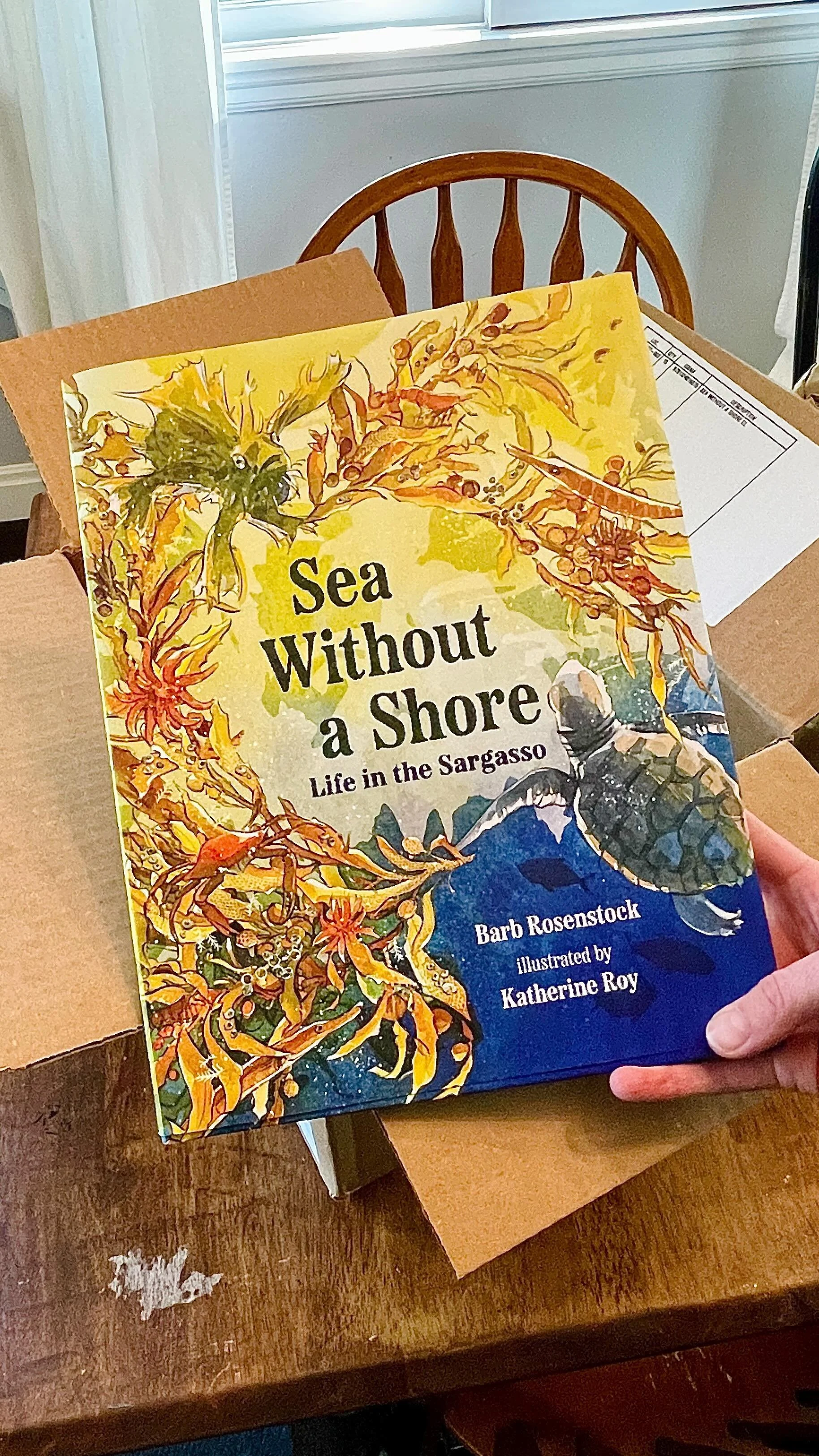 What's it like to do research on location for a book? Join author Barb Rosenstock and author/illustrator Katherine Roy for this one-minute video as they peer into clumps of sargassum seaweed to watch the crawling frogfish, pinching crabs, and skittering shrimp that call this floating ecosystem home. This footage was filmed on location in 2022 during Barb and Katherine’s research trip to Bermuda.
